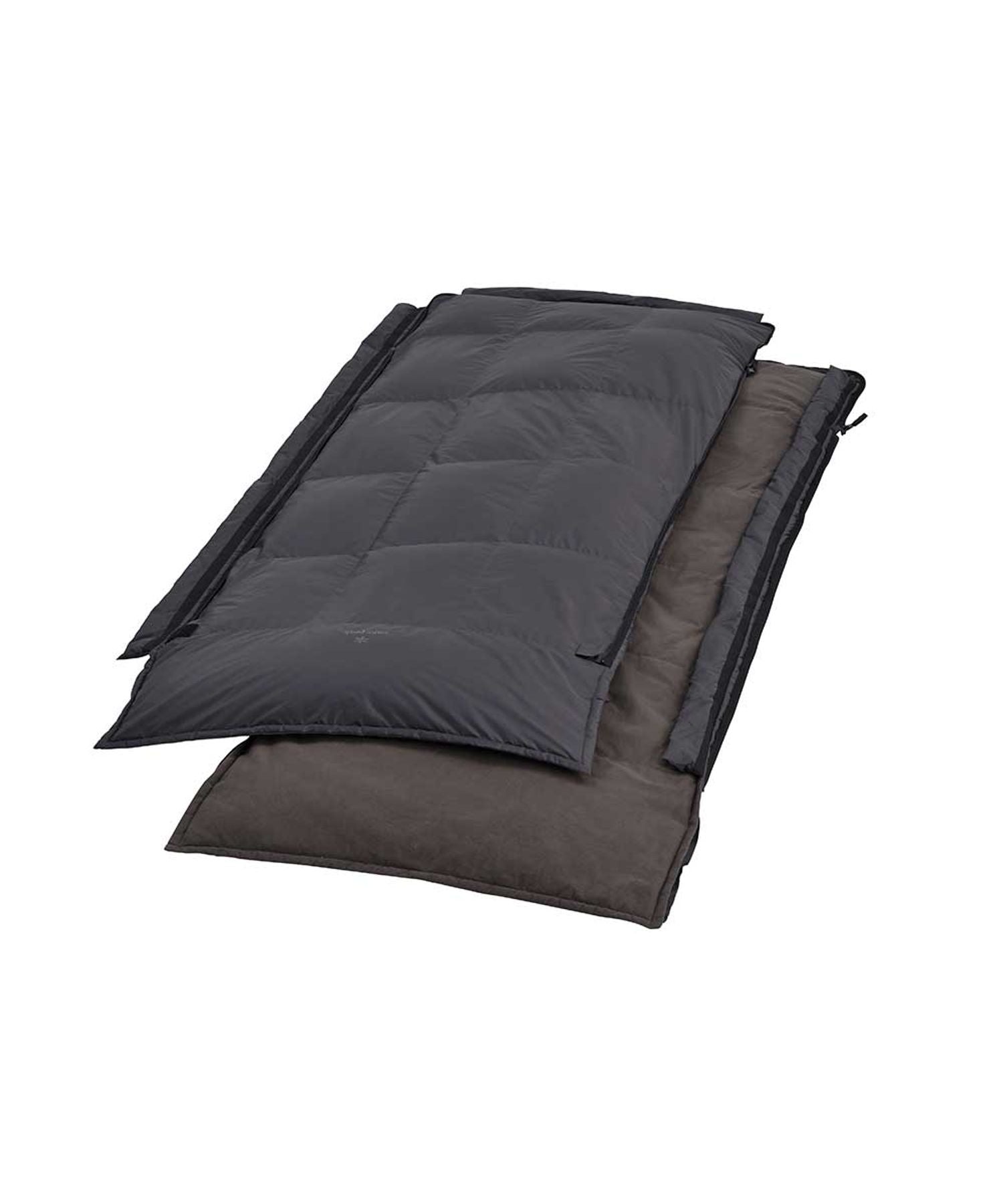 これからの秋冬のキャンプに活躍するダウンシュラフ。寝袋の横幅とダウン量を調整し、秋冬にも安心な下限-5℃対応でありながら、コンパクトな収納サイズの寝袋です。サイズをスリム化しながら、FP800の上質なダウンを使用することでコンパクトながらも、十分なゆとりのある就寝スペースと温度スペックを確保しています。掛け布団と敷き布団が家の布団のように分離でき、シーズンにより「掛け・敷き」にセパレートして使用することが可能です。また、「掛+掛」「敷+敷」の連結も可能で、両サイドのファスナーで「掛」は「掛」、「敷」は「敷」同士を連結させて、大きな一つのオフトンとしても使う事ができます。
